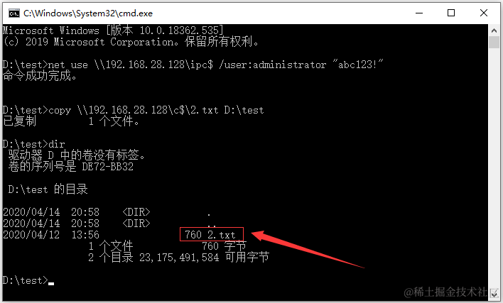 copy \\192.168.28.128\c$\2.txt D:\test