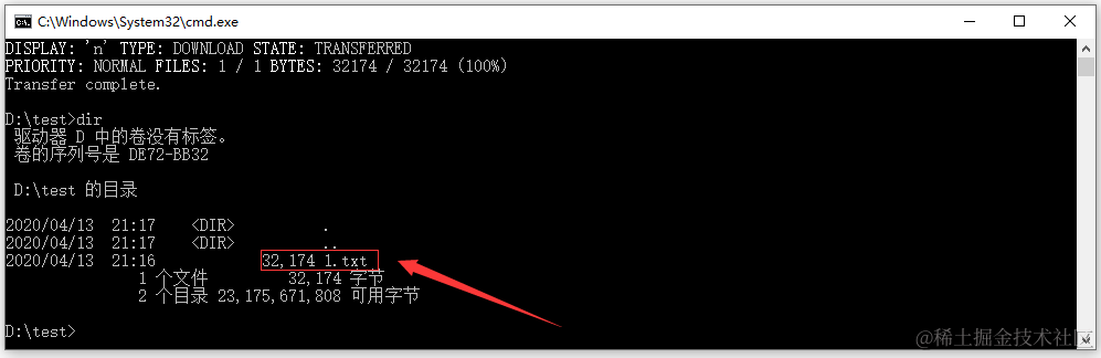输入以上命令,成功下载文件。