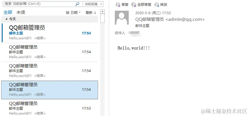 我们分别使用网页版邮箱和客户端邮箱打开同一封邮件,通过对比可以发现,不同的邮件客户端对发件人位置的内容解析是不一样的。