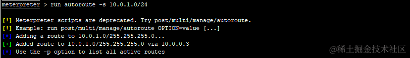 [!] Meterpreter scripts are deprecated. Try post/multi/manage/autoroute.