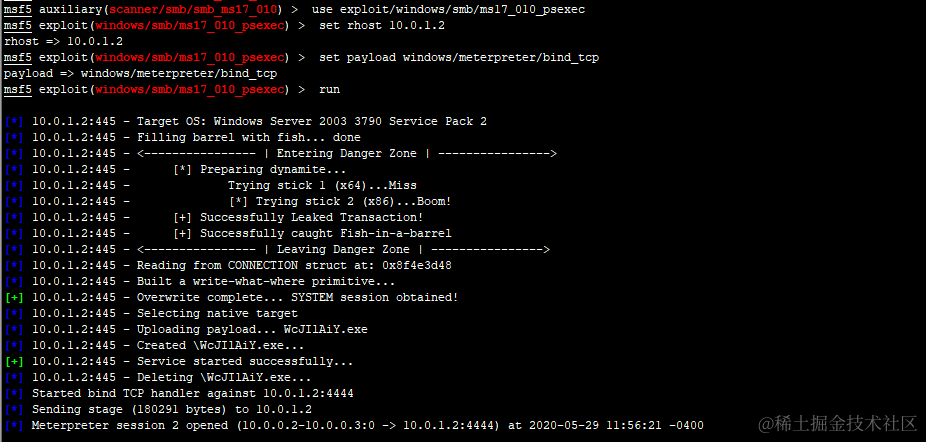 4、通过MS-17010漏洞获取Server3的系统权限。