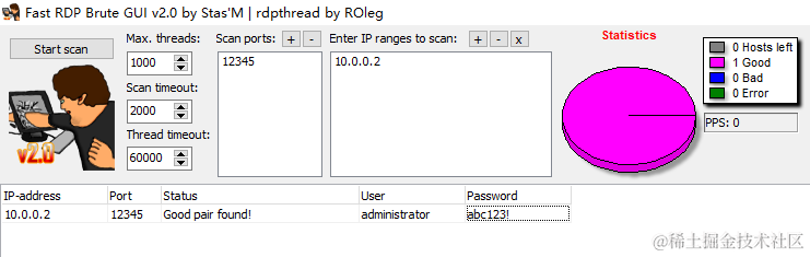 探测第四个网段存活的主机,发现10.0.3.2 开放了3389端口。