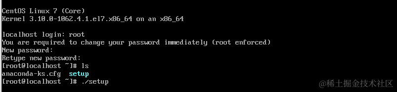 3、开启虚拟机,设置root账号密码,在root目录下有setup安装程序,直接运维./setup