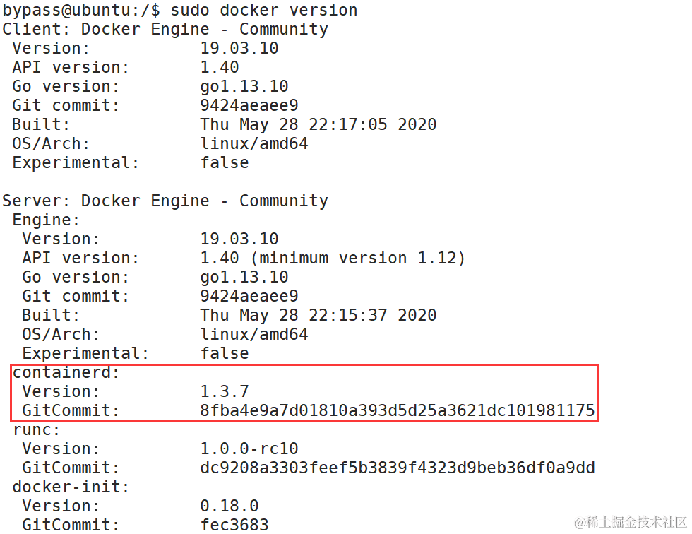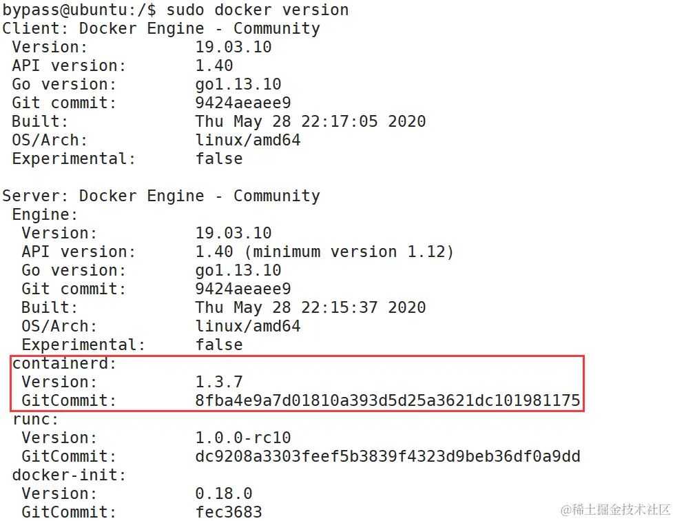 (1)安装有漏洞的containerd版本,影响版本containerd< 1.3.9&&containerd < 1.4.3