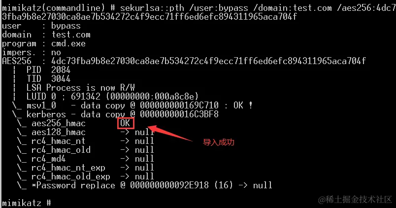 第二步:利用mimikatz将工具得到的TGT票据写入内存,创建缓存证书