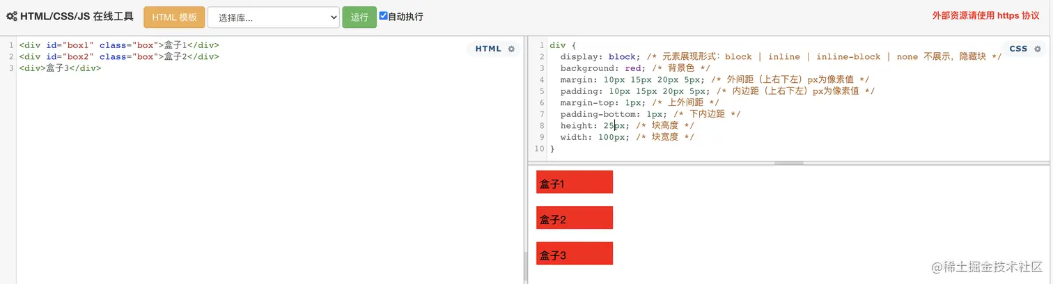 .class值 { ... }可以将下面css代码应用到上述html内容中,给所有box盒子添加相同背景色: