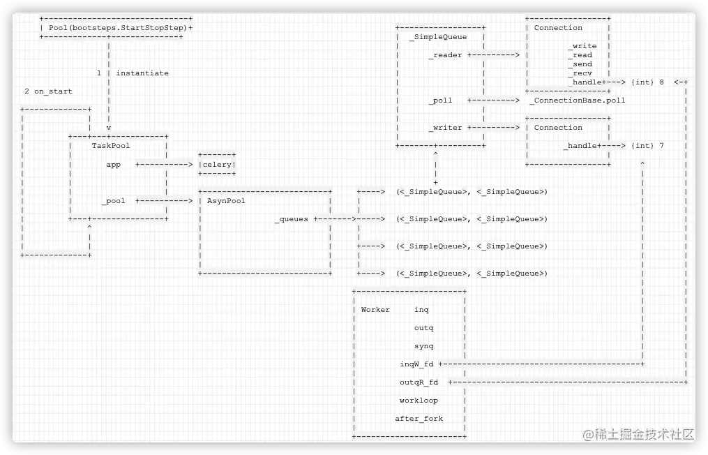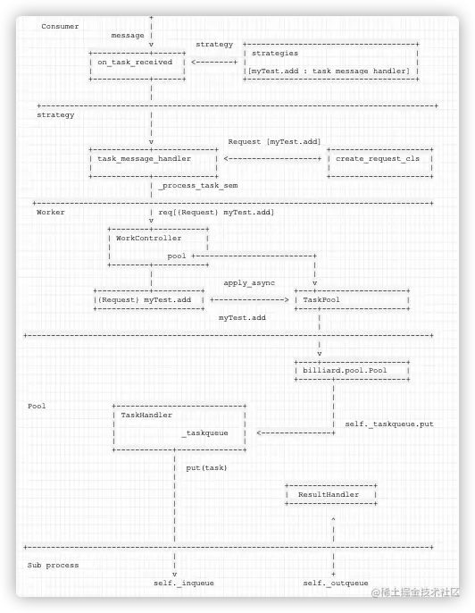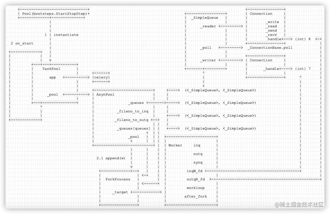 - Celery 作为一个整体系统如何把多进程模型融入进来,从而得到进程池;