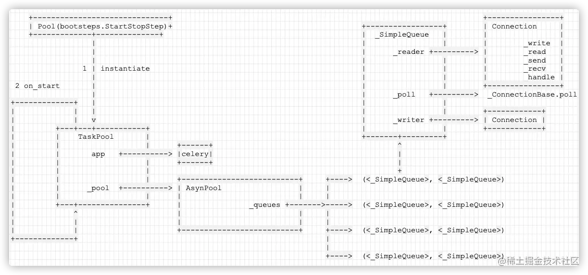 首先,Consumer Pool 启动从 bootsteps 开始。这个 Bootstep 是 worker 真正的执行引擎。