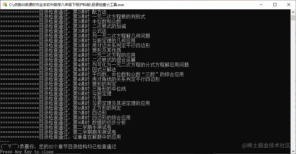 print("( ̄▽ ̄)恭喜你,您的{}个章节目录结构均已检查通过".format(len(success_files)))