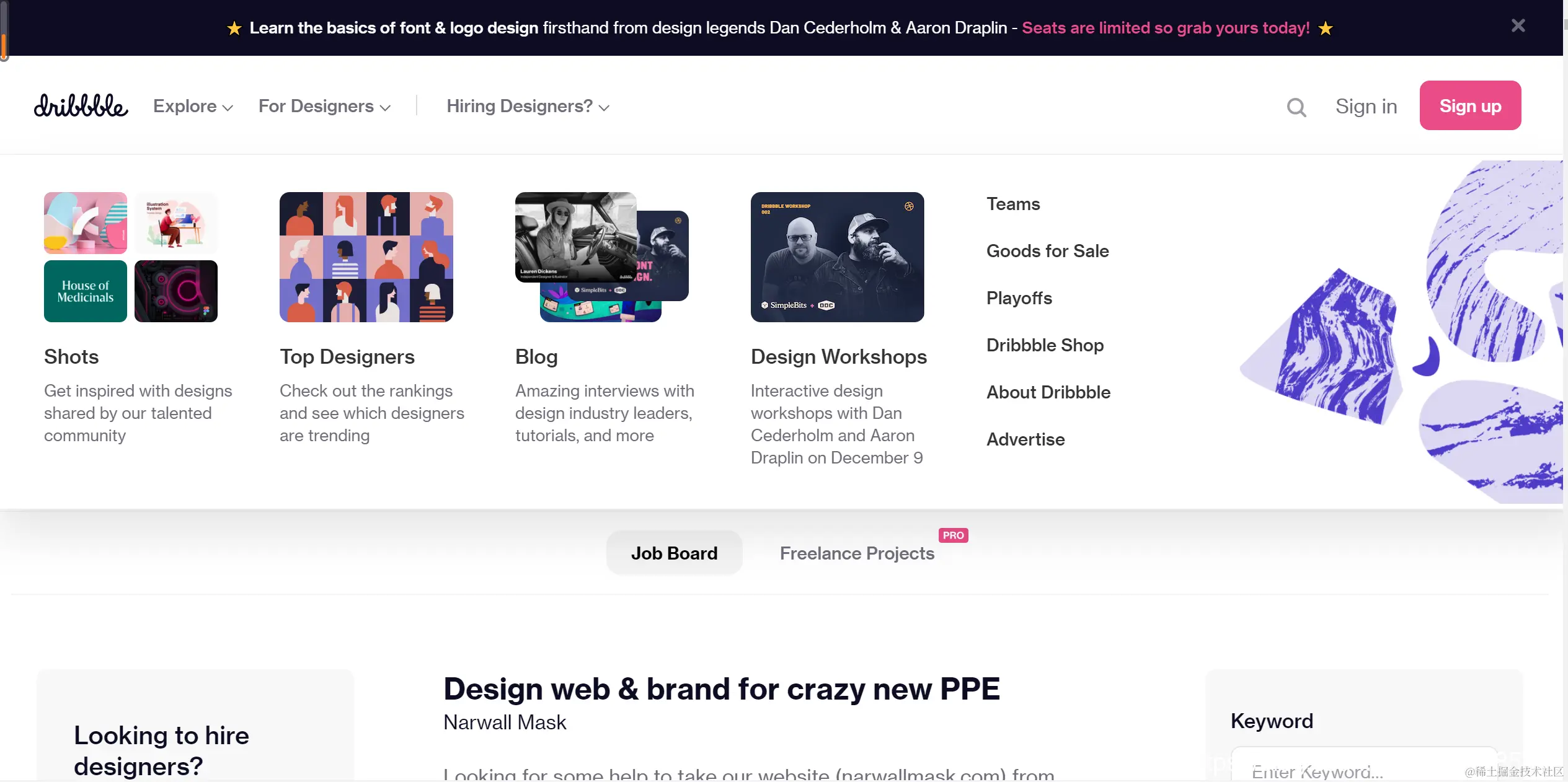 你没看错,Dribbble 不只是全球最受欢迎的设计师社区,同样是设计师寻找远程工作的好出处。自从被 Tiny 收购后,Dribbble 的招聘属性正在慢慢增强,试着持续 PO 出自己的好作品,等待你的伯乐,同样你可以关注 Jobs 页面,给心仪的 Team 提交简历。
