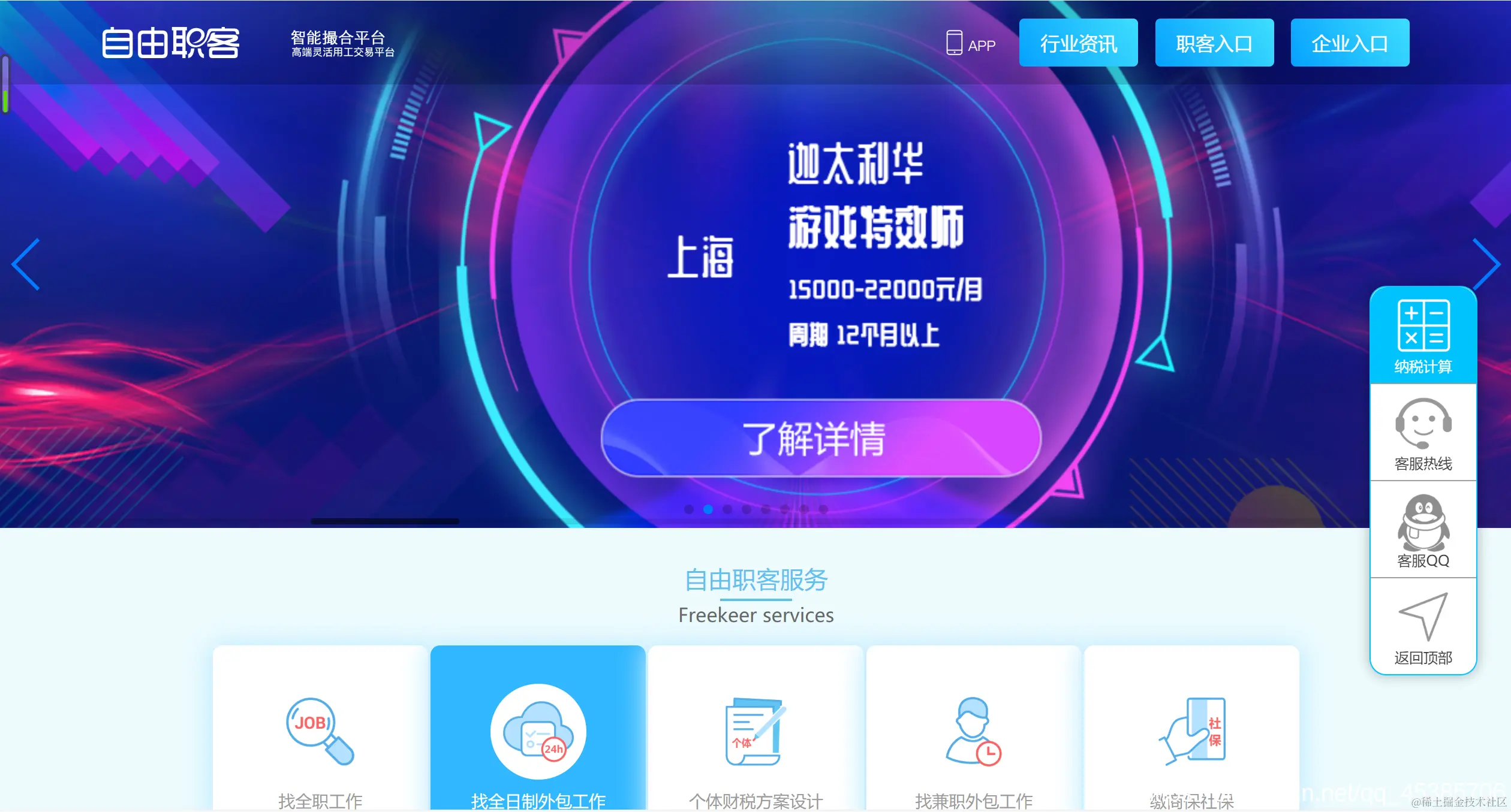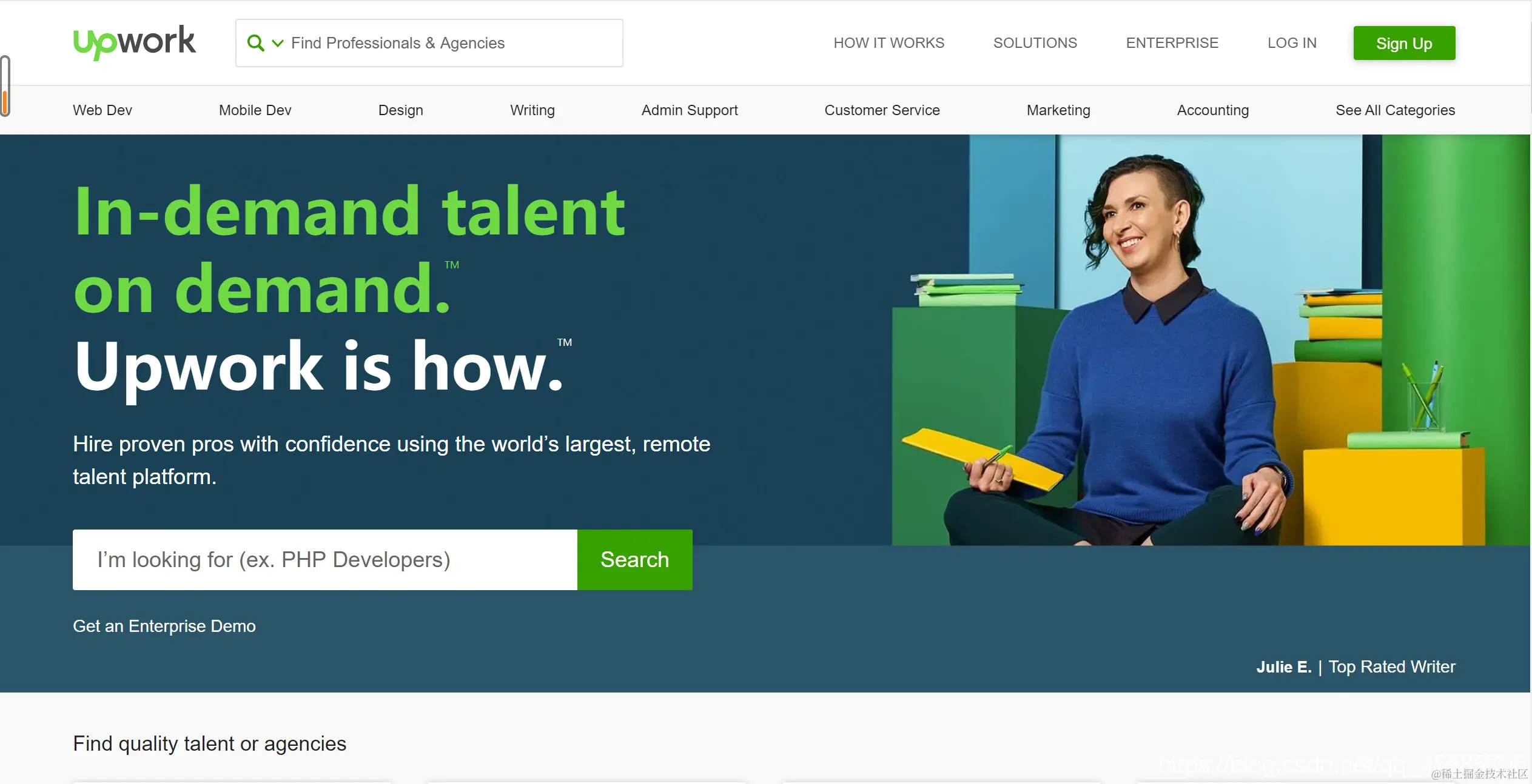 Upwork 是全球最大的、最优秀的、最规范的综合类人力外包服务平台,由著名的 Elance 和 oDesk 合并。这里聚集 900 万来自全球各地的自由工作者,你肯定可以在找到适合你的职位。