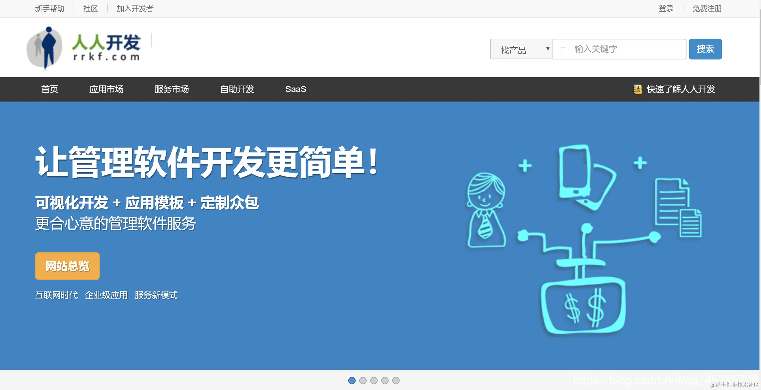 3、 人人开发 - 应用市场开发服务平台: www.rrkf.com/