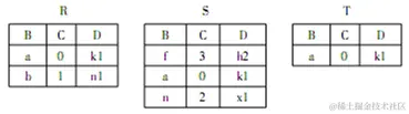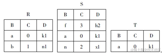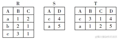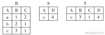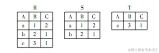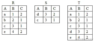 有三个关系R、S和T如下