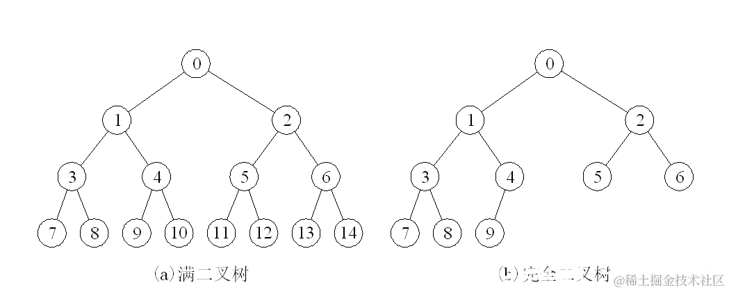 满二叉树:除最后一层外,每一层上的所有结点都有两个子结点。