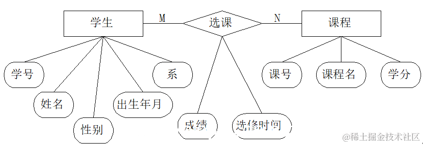 下图是一个E-R模型的图示例: