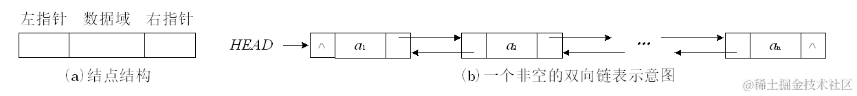 在单链表中,每一个结点只有一个指针域,由这个指针只能找到其后件结点,而不能找到其前件结点。 因此,在某些应用中,对于线性链表中的每个结点设置两个指针,一个称为左指针,指向其前件结点;另一个称为右指针,指向其后件结点,这种链表称为双向链表,如下图所示: