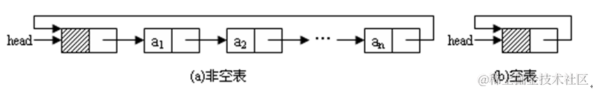 下图a是一个非空的循环链表,图b是一个空的循环链表: