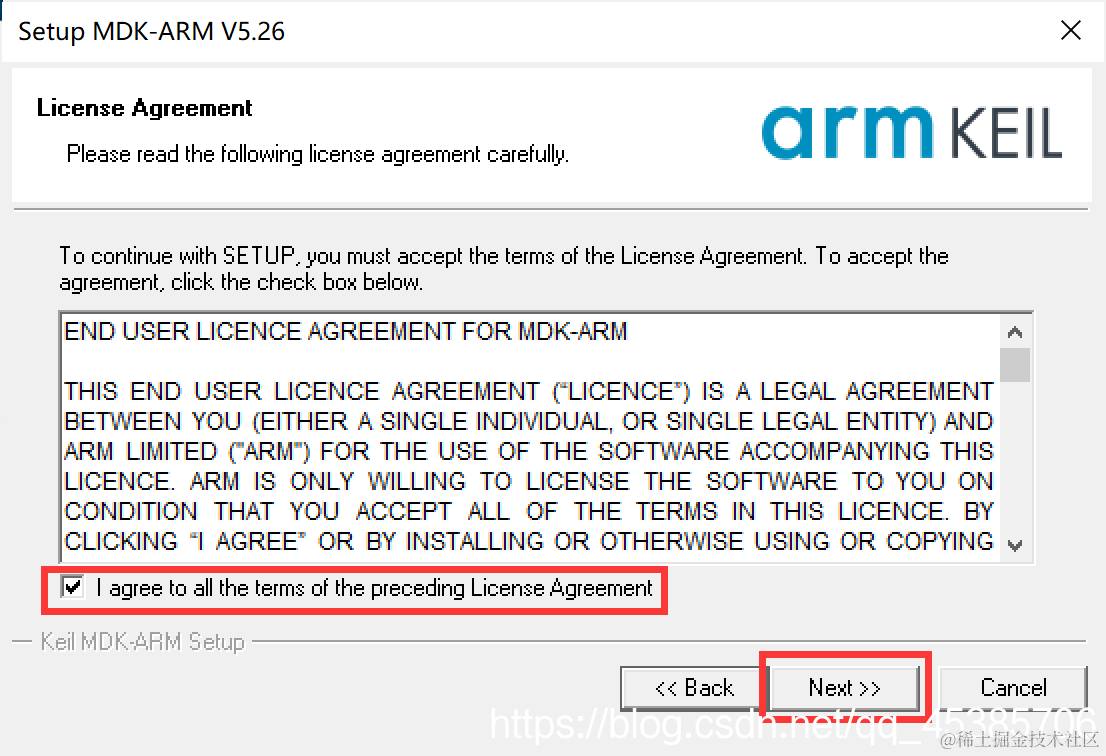 2、勾选 lagree to all the terms of the preceding License Agreement后,点击Next>>