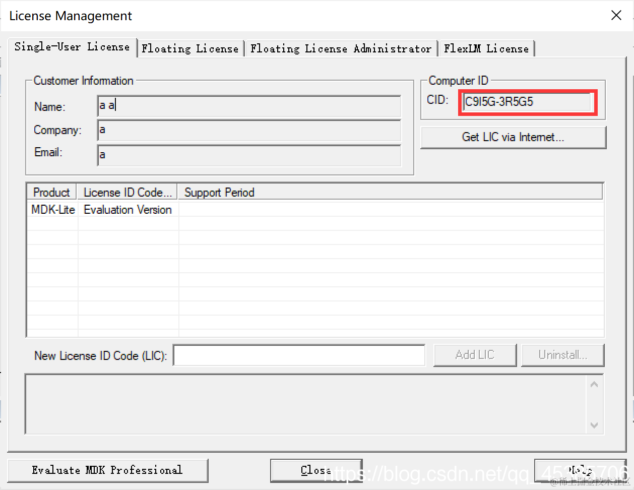 10、打开下载好的注册机,把复制好的CID粘贴到注册机里面(下载地址:download.csdn.net/download/qq…)