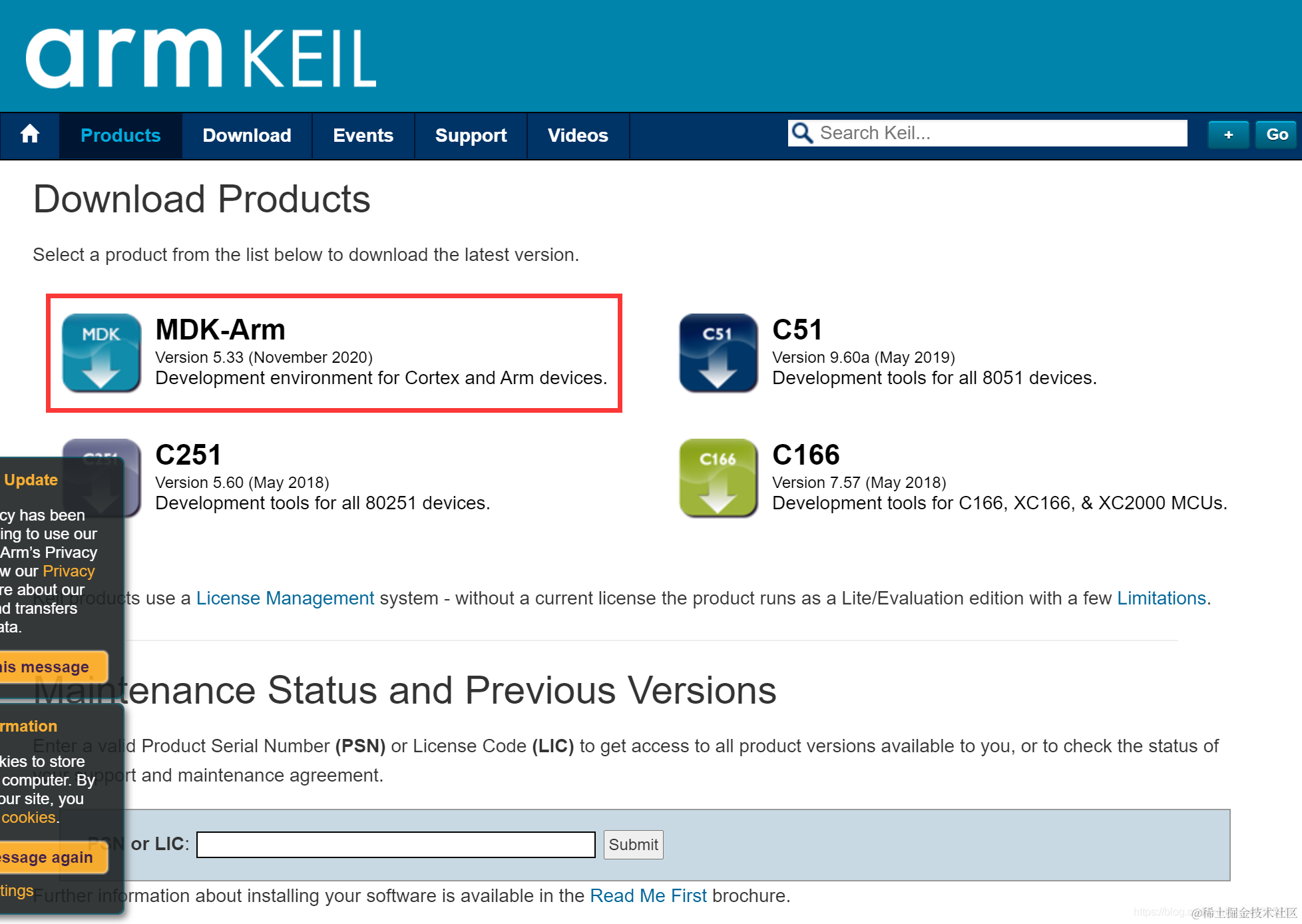 15、接下来安装STM32芯片包,Keil5不像Keil4那样有很多厂商的MCU,需要自行下载安装,下面是下载地址:www.keil.com/dd2/pack/