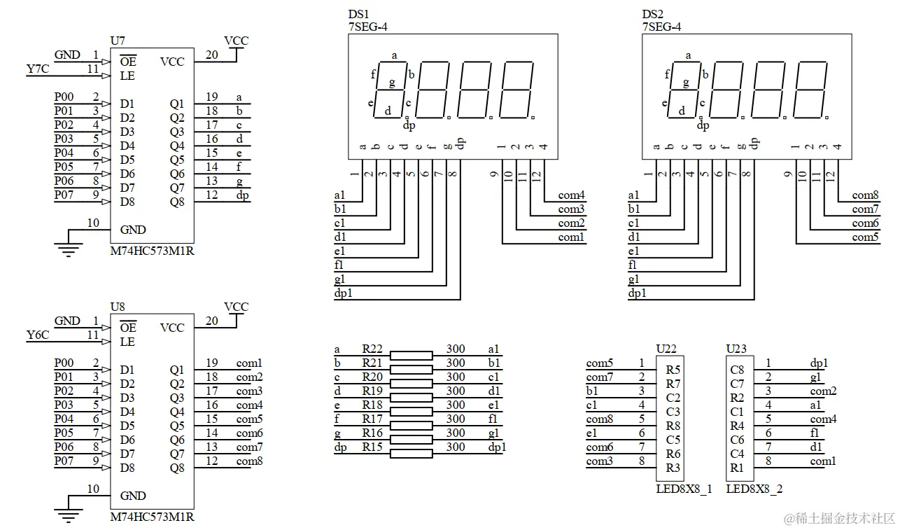 这篇主要带大家了解一下如何对蓝桥杯单片机开发板的数码管进行基本操作,大家可以看一下电路图,这里不再对74HC138译码器和74HC573锁存器做讲解,可以参考蓝桥杯单片机----LED指示灯的基本控制里面的内容。