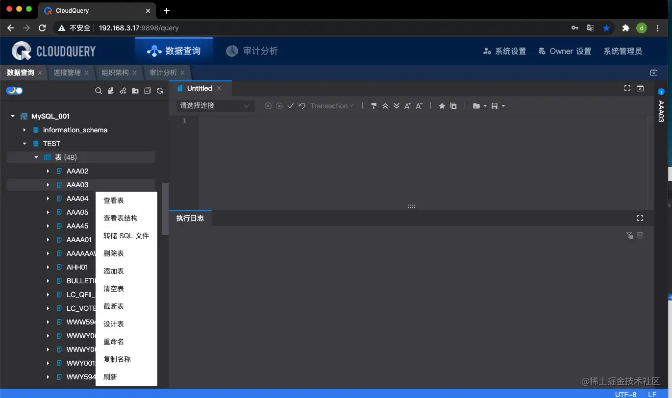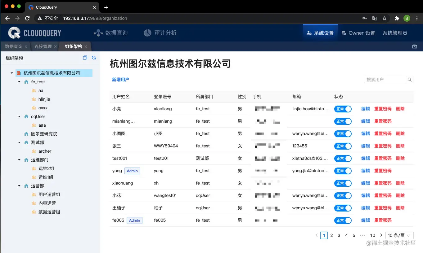 CloudQuery 这款工具的好处是仅需一个浏览器就可以连接到所有常用的数据源,而且支持终端命令,权限管控、组织架构等功能,使用起来很方便,大大提升了工作效率。
