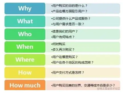 5W2H分析法又称七何分析法,包括:Why、What、Where、When、Who、How、How much 。主要用于用户行为分析、业务问题专题分析、营销活动等,是一个方便又实用的工具。