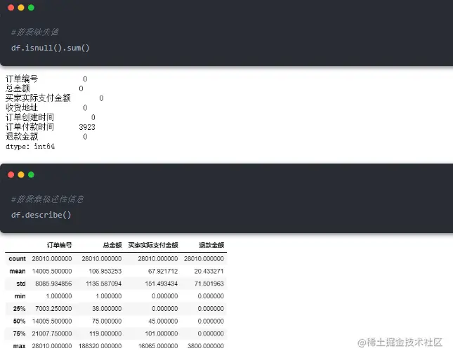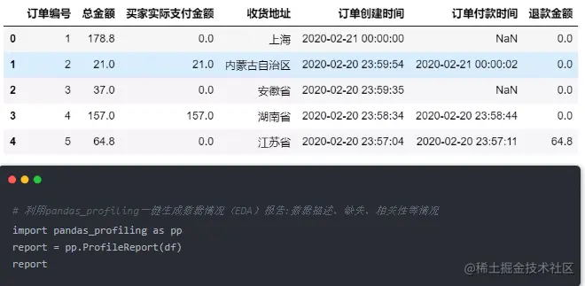 import pandas as pdimport numpy as npimport matplotlib.pyplot as pltimport osimport warningswarnings.filterwarnings('ignore')# 读取数据df = pd.read_csv('tmall_order_report.csv')df.head()