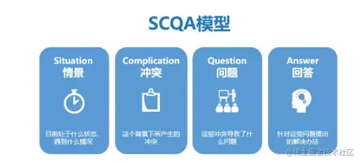 SCQA分析是一个“结构化表达”工具,即S(Situation)情景、C(Complication)冲突、Q(Question)疑问、A(Answer)回答。