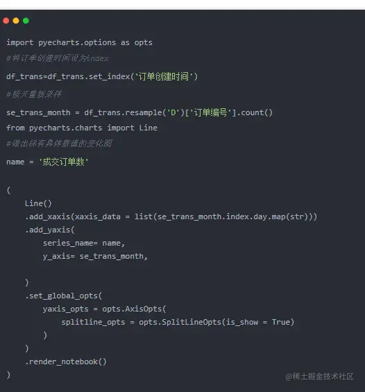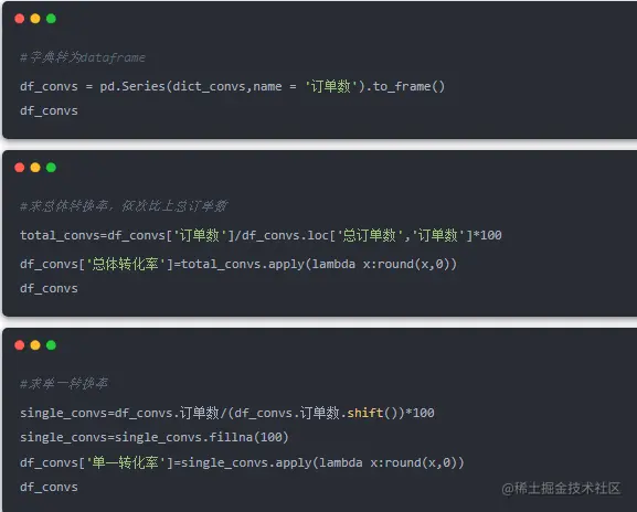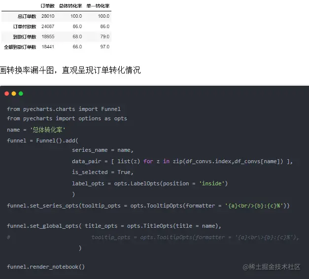 订单数以及订单转化率的呈现