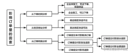 本文结合订单流程以逻辑树方法分析订单数目的影响因素,从以下几个维度展开: