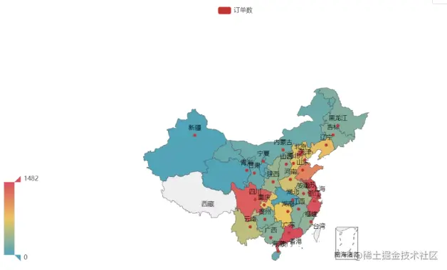 用直观的地图来观察成交订单数的分布情况