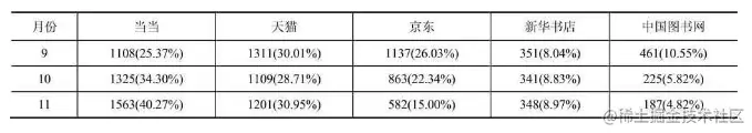 举例:新书在各销售渠道的销量