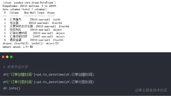 f. 订单付款时间:付款时间(如果未付款,显示NaN)