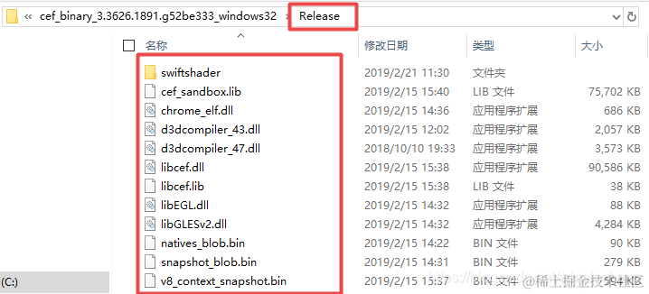 4、解压cef_binary_3.3626.1891.g52be333_windows32中Release文件夹和Resources文件夹