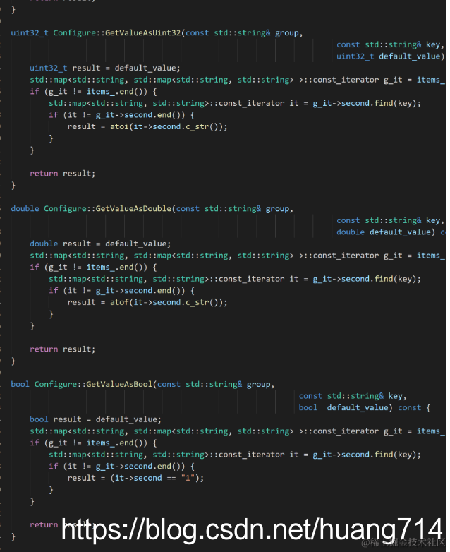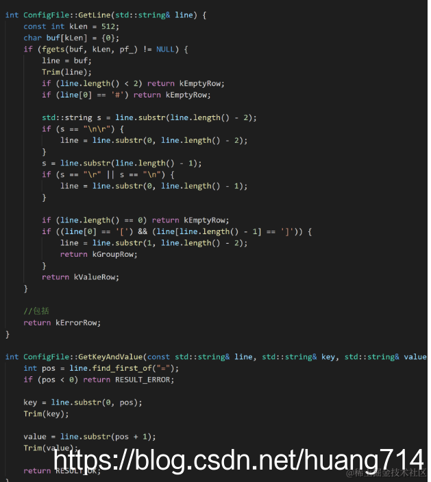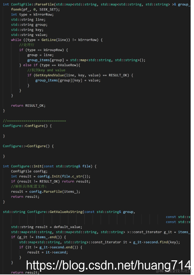 int ParseFile(std::map<std::string, std::map<std::string, std::string> >& group_items);private: int GetLine(std::string& line); int GetKeyAndValue(const std::string& line, std::string& key, std::string& value);