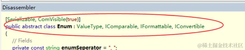 所有枚举类型都隐式地继承 System.Enum 类型, System.Enum 类型是继承自 System.ValueType 类型唯一不为值类型的引用类型;