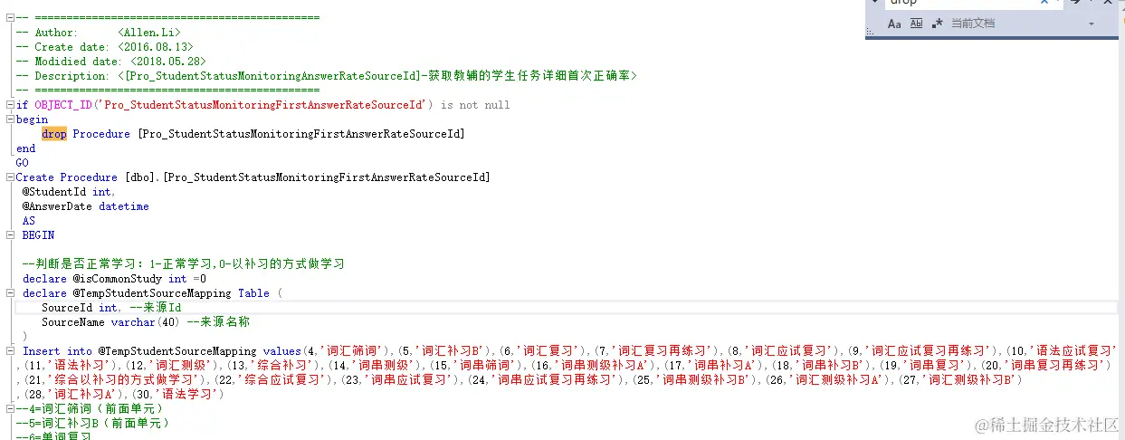 三、判断存储过程是否存在,并创建存储过程: