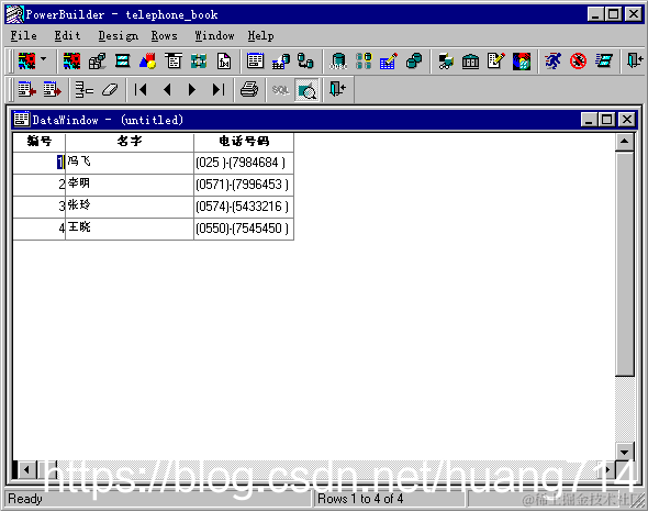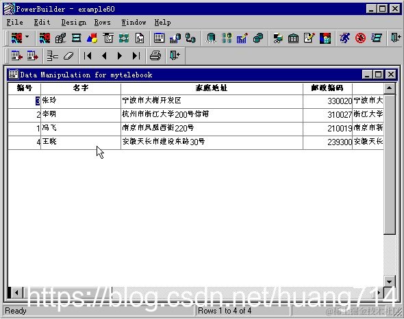到目前为止,我们成功地创建了一个数据库和它的一个表,表中有四条记录,当然你可以用本节介绍的方法往表中添加更多的记录。接下来将创建POWRBUILDER应用程序不可缺少的组成部分——应用对象。