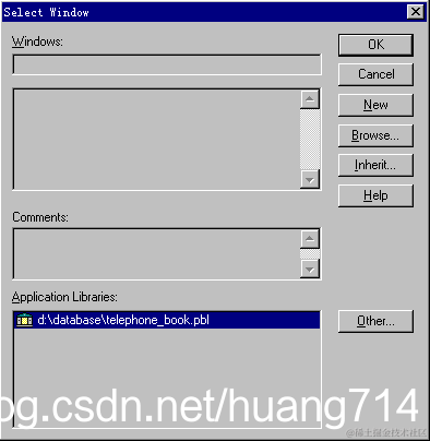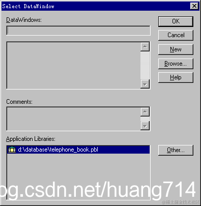 单击工具条上的DATAWINDOW画板按钮,系统弹出一个名为SELECT DATAWINDOW的对话框,用以选择已存在的数据窗口对象或者创建新的数据窗口对象(图2-26)。