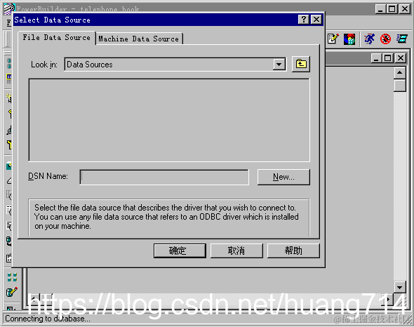 从FILE菜单中选中CONNECT菜单项,系统弹出一个子菜单(图4-1),其中的菜单项被分成了两部分,上面部分中的菜单项代表了系统可以连接的数据库描述的名字,数据库描述是用来定义和存放与某个特定的数据库或者数据源相连时所需要的各种参数的,它将在程序进行数据库相连时被使用,为连接工作提供所需要的各种参数。加了选中标记的表示系统当前所连接的数据库来自这个数据库描述。如果我们单击其它的数据库描述,系统将会把这个描述中的数据库设置成当前数据库。CONNECT菜单的下面部分的两个菜单项是非常重要的,它们用于配置数据库的信息。选中PROMPT菜单项,系统弹出名为DBMS的对话框,让用户选择数据库管理系统,列表框中列出的是当前PowerBuilder支持的所有类型的数据库管理系统。这里选择ODBC类型,它最常用,也最具有通用性。选好后单击OK按钮,弹出一个对话框让我们选择数据源(图4-2),也就是数据库的名字,这里显示的数据库都是可以使用ODBC方式访问的数据库,也就是我们刚才选中的ODBC类型的数据库。选择我们以前创建的TELEBOOK数据库,然后单击OK按钮,系统就连接到被选中的数据库并打开SELECT TABLES对话框用来选择数据库中的表,从这里开始就可以对当前的数据库进行你需要的操作。关闭SELECT TABLES对话框,单击FILE菜单,然后选中CONNECT菜单项,可以发现这是它的子菜单中没有一个处于选中状态,也就是说没有一个数据库描述被选中,这是因为此时我们没有利用数据库描述来间接连接数据库,而是采用交互的方法直接选中了一个实际的数据库并打开它。