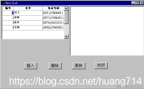 用类似的方法为第二个数据窗口控件联结刚才定义的数据窗口对象TELE-DATAWINDOW2,联结好之后把四个命令按钮控件上的文字分别改为“插入”,“删除”,“更新”和“关闭”,而它们的名字则分别修改为“CB-INSERT”,“CB-DELETE”,“CB-UPDATE”,“CB-COLSE”。