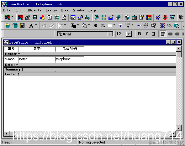单击OK按钮,第一个数据窗口控件中显示的就是它所联结的数据窗口对象的结构。
